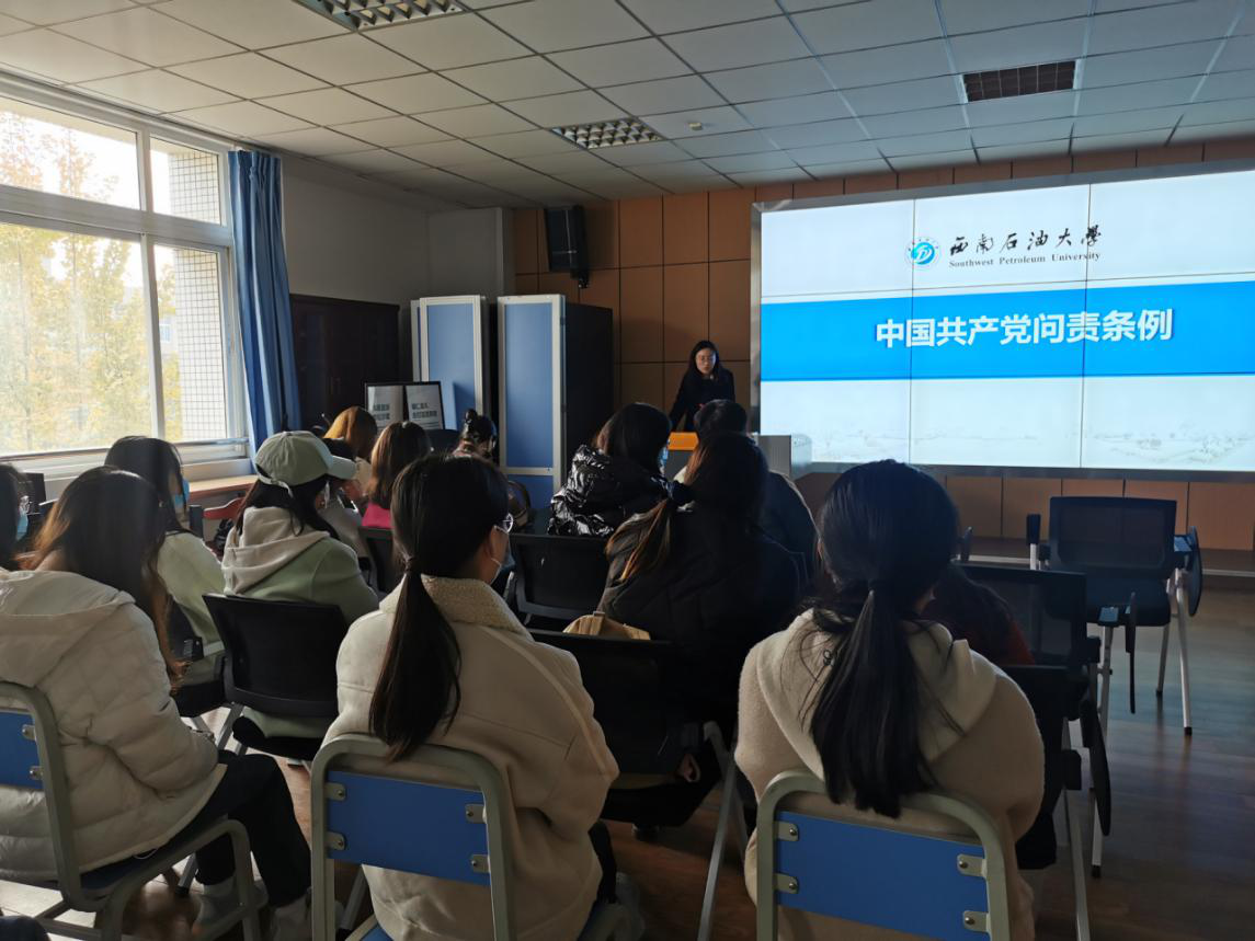 11月11日,社會工作(本科)學生黨支部在博學樓A406召開專題學習會,全體黨員同志共同學習《中國共產黨問責條例》及《中國共產黨紀律處分條例》,本次專題學習由支部書記肖丹老師主持。