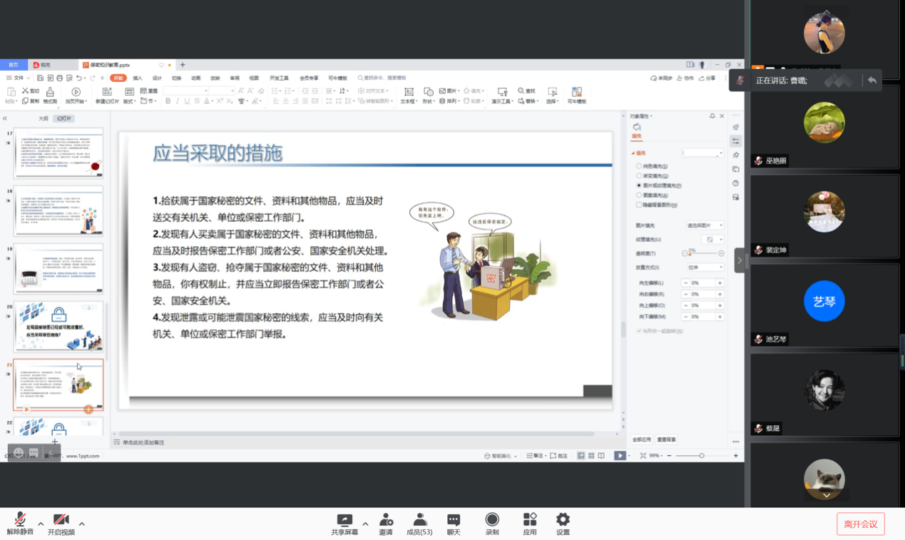 2021年11月11日晚19:00—20:00法學院社會工作專業研究生黨支部組織了線上《高校師生保密知識讀本》學習專題組織生活會,共計53名黨員同志及積極分子參與。
