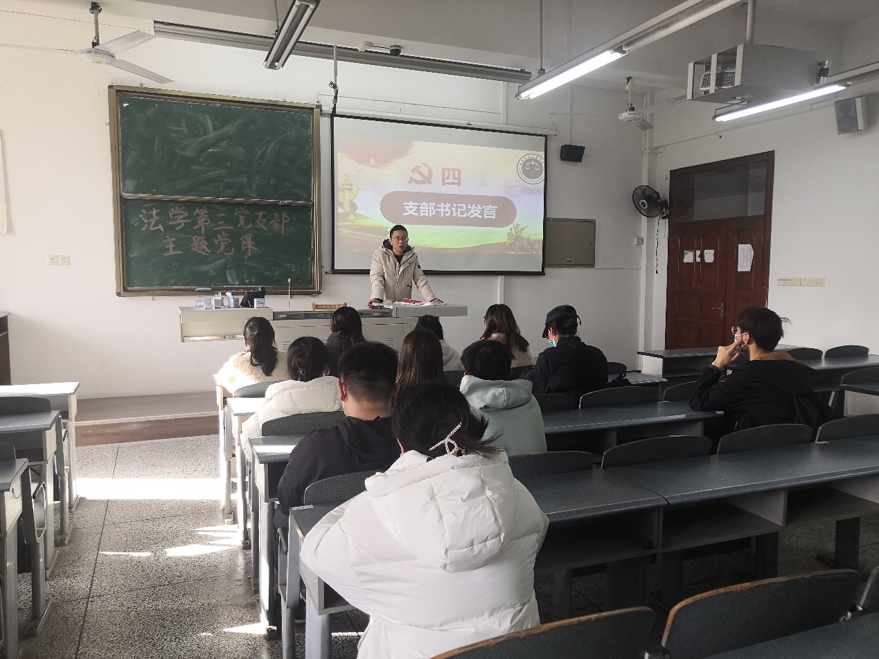 2021年11月23日下午15:00,西南石油大學法學院法學學生第三黨支部在博學樓A504召開了關于學習黨的十九屆六中全會精神的主題黨課。會議應到15人,實到15人,黨支部書記平凱同志主持本次會議,會議順利召開。