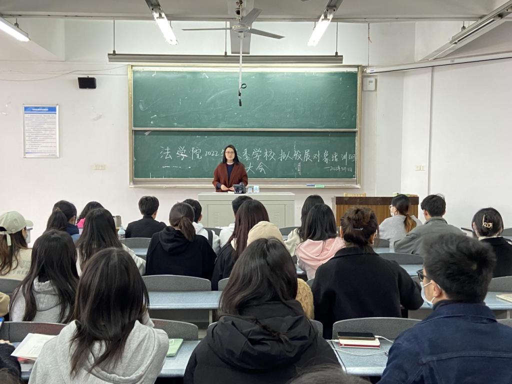為適應新形勢下黨員教育的需要,加強擬發展對象對黨的認識,端正入黨動機,保持良好的學習態度,強化對全體學員的思想教育,3月31日下午14:30法學院召開了2022年春季學期學校擬發展對象培訓班動員大會。本次動員大會全體人員按時到場,由楊可瀚老師主持。