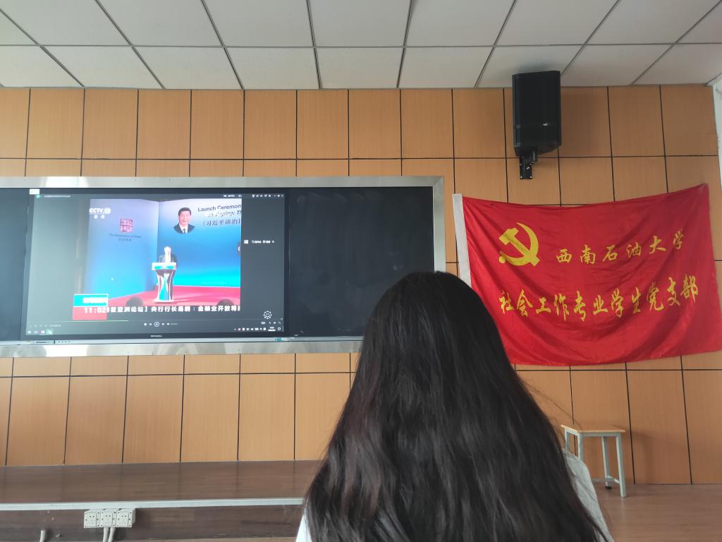活動開始,主持人為我們介紹了《習近平談治國理政》的重要地位,它是中國共產(chǎn)黨人的政治底色、生生不息的力量源泉,同時為我們拓展了第三卷所包含的著作,加深了我們對《習近平談治國理政》的理解。主持人從文化書香和人民情味的角度來深入講解,引導大家感悟傳承中華優(yōu)秀傳統(tǒng)文化,感受深厚的文化底蘊和歷史哲理,深刻感悟“人民”二字在總書記的思想中具有基礎性、根本性的地位和作用。隨后,主持人為大家播放了相關(guān)新聞聯(lián)播的視頻,展現(xiàn)了不同國家領導人對《習近平談治國理政》思想的評價,稱贊其與時俱進,高度評價了《習近平談治國理政》思想。