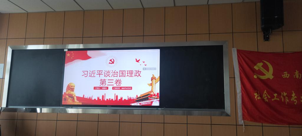 《習近平談治國理政》第三卷是充分反映黨的十九大以來習近平總書記領導全黨全國各族人民攻堅克難、砥礪前行偉大實踐的最新教材,是用習近平新時代中國特色社會主義思想武裝全黨、教育人民、推動工作的最新教材,是我們黨不忘初心、牢記使命、團結(jié)帶領人民創(chuàng)造更加幸福美好生活的最新教材,是為世界謀大同、推動構(gòu)建人類命運共同體的最新教材。社工黨支部于2022年6月2日召開主題為學習“《習近平談治國理政》第三卷”的黨組織生活,本次此次黨組織生活分四個部分進行,包括政治底色、文化書香、人民情味和四種形態(tài),細致講解了《習近平談治國理政》的思想和內(nèi)容。