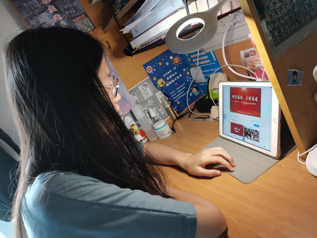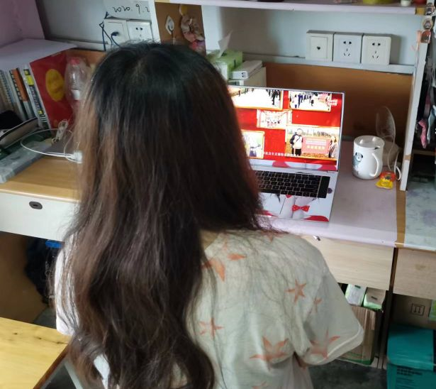 圖二:社工學生黨員宿舍觀看黨史微課