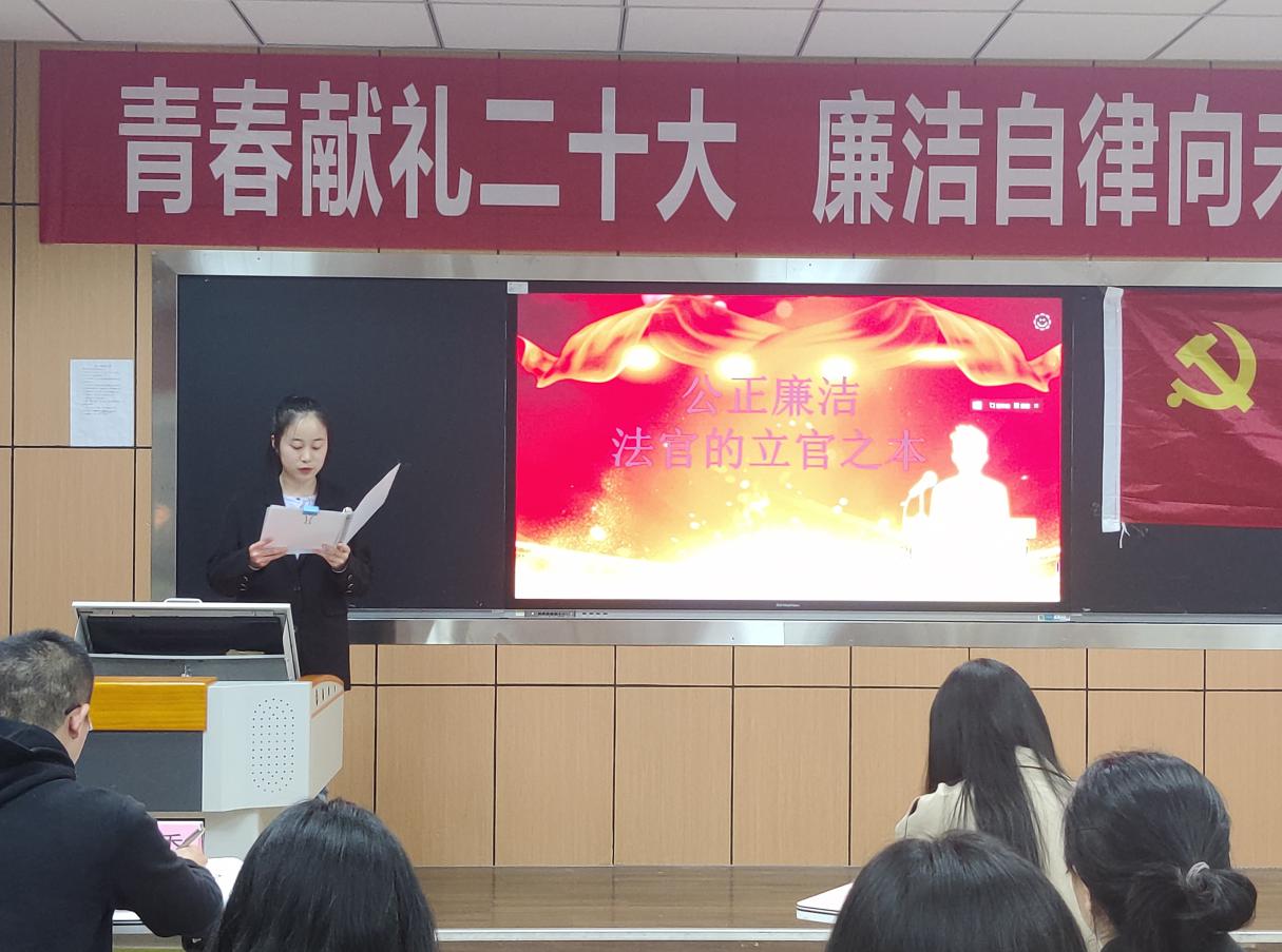 為進(jìn)一步培養(yǎng)全院同學(xué)廉潔自律意識,樹立清風(fēng)正氣氛圍,提高全院師生品德修養(yǎng),法學(xué)院學(xué)生黨建工作站于11月11日晚19點(diǎn)30分在博學(xué)樓A406舉行了“青春獻(xiàn)禮二十大·廉潔自律向未來”系列活動之“傳廉音,頌廉德”主題演講比賽。法學(xué)院學(xué)生黨建工作站主任杜舒舒,法學(xué)院主持人隊前隊長高志雨,法學(xué)院學(xué)生黨建工作站綜合部部長黃鵬到場擔(dān)任評委。