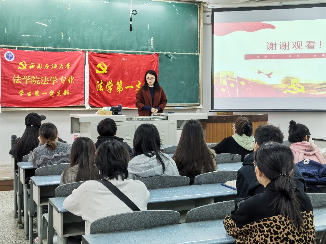 通過本次政治理論學習,黨支部全體同志對黨的二十大精神有了更加深刻的理解。在后期工作中,法學專業學生第一黨支部將持續學習貫徹宣傳黨的二十大精神,推動全體青年學生踔厲奮發,賡續前行,為全面建成社會主義現代化強國,以中國式現代化全面推進中華民族偉大復興而不懈奮斗。