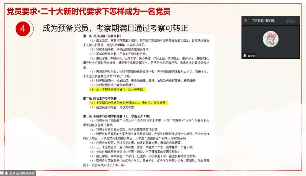 圖二:夏夢(mèng)遙同志講解入黨要求