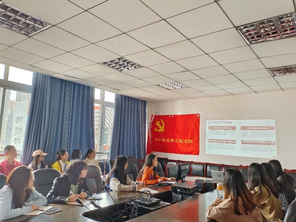 為了進一步學習習近平總書記重要講話精神及相關政策文件,加強各黨員的政治理論學習,持續強化理論武裝,推進黨的創新理論入腦入心、走深走實,法學專業學生第二黨支部于2023年3月9日15時在博學樓AB510會議室開展“學習總書記重要講話精神,領略中國式現代化重要成果”政治理論學習。本次活動學習形式為線上騰訊會議與線下同步開展,由支部同志劉靖童同志主持。