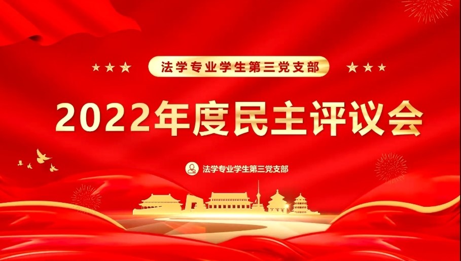 為深入學習貫徹黨的二十大精神,堅持不懈用習近平新時代中國特色社會主義思想凝心鑄魂,根據黨內有關規定和通知要求,法學院法學專業學生第三黨支部于3月12日晚開展了黨員民主評議會。