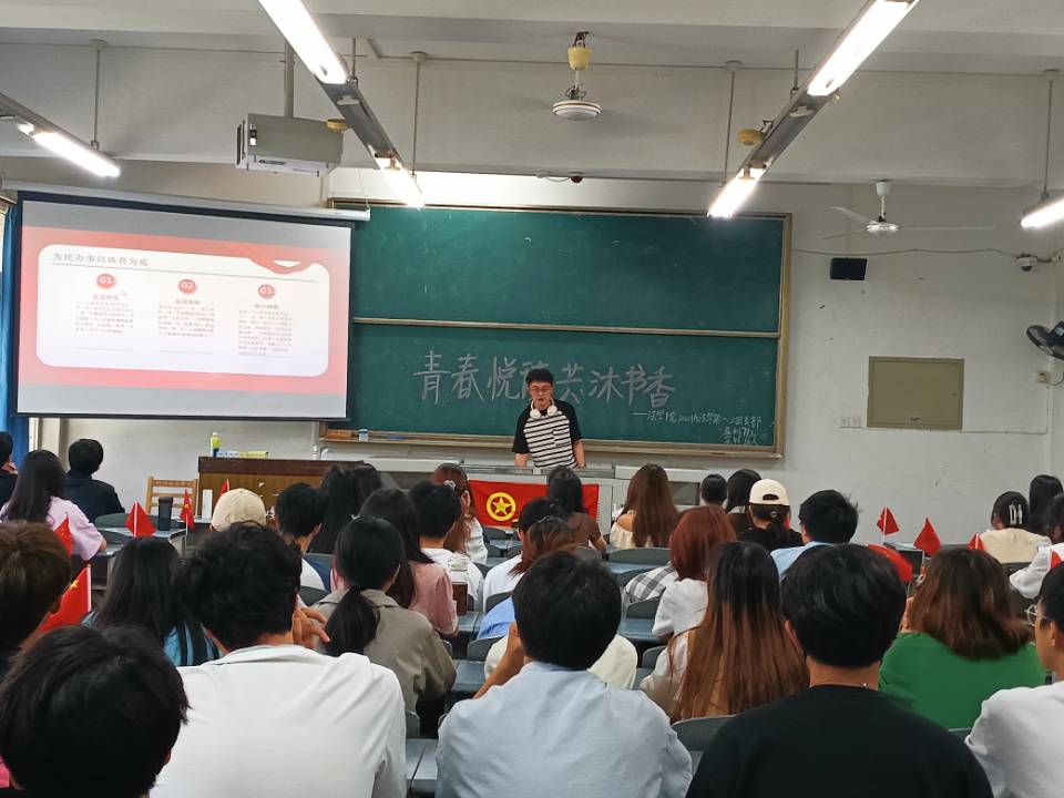 為進一步增強黨支部的凝聚力,充分發揮黨員的先鋒模范作用,引導和激勵更多共青團員在思想上、行動上積極努力向黨組織靠攏,法學專業學生第一黨支部于2023年4月27日開展“黨員進團——新時代大學生應該具備怎么樣的素質才符合黨員標準”主題宣講活動。本次宣講活動由法學專業學生第一黨支部黨員張禎同志擔任主講人,2022級法學專業一、二班團支部全體團員參與。