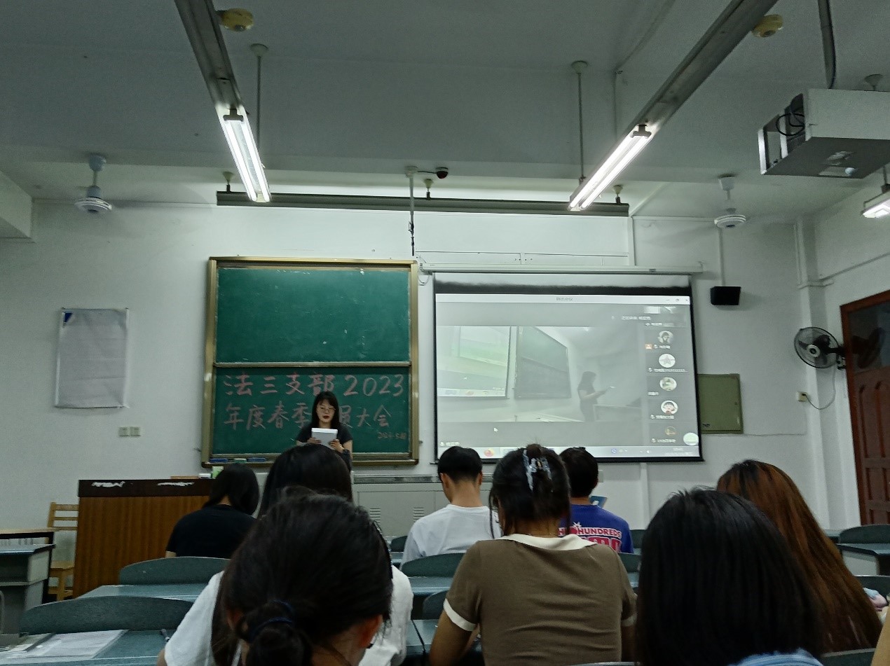 為吸納優秀學生、壯大黨員隊伍,為支部發展打下堅實基礎, 5月19日晚,法學專業學生第三黨支部在博學樓A501召開了2023年春季學期預備黨員發展大會,支部全體同志參與。