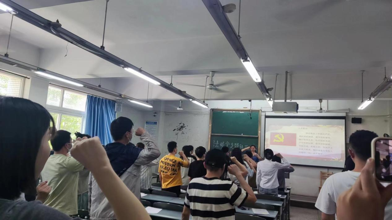 會(huì)議最后,法碩黨支部轉(zhuǎn)正黨員在副書記黃小堅(jiān)同志的帶領(lǐng)下一起宣誓入黨誓詞,終身牢記自己在黨旗下立下的誓言,用入黨誓言時(shí)刻激勵(lì)自己,不斷提高責(zé)任感、使命感、榮譽(yù)感,始終以黨員標(biāo)準(zhǔn)要求自己,積極向上發(fā)奮努力,為黨、為國(guó)家、為社會(huì)做出自己應(yīng)有的貢獻(xiàn)。