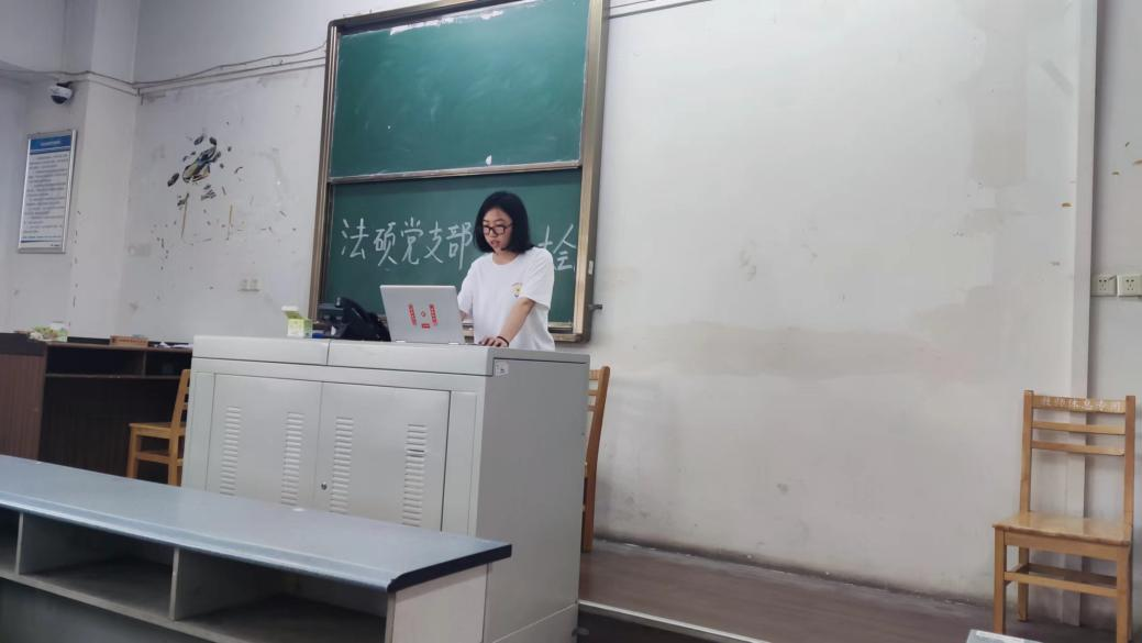 以理論滋養初心,以理論引領使命。學黨章、讀二十大報告是黨員與積極分子的思想必修第一課!為深入學習貫徹黨的二十大精神,推進主題教育走深走實,6月9日,法碩黨支部在博學樓B102開展了“認真學習章程,嚴格遵守黨章”主題教育活動,體會黨章所蘊含的黨員精神,本次主題活動由黨支部見習支委付曉玲主持。