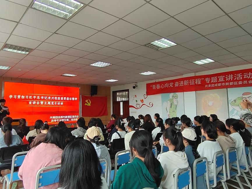 為深入學(xué)習(xí)貫徹主題教育,推動(dòng)習(xí)近平總書記來川視察重要指示精神落地落實(shí),9月25日,由共青團(tuán)成都市新都區(qū)委員會(huì)和法學(xué)專業(yè)學(xué)生第二黨支部聯(lián)合舉辦的 “學(xué)習(xí)貫徹習(xí)近平總書記來川視察重要指示精神宣講會(huì)暨主題黨日活動(dòng)”在博學(xué)樓A402成功舉辦。法學(xué)專業(yè)學(xué)生第二黨支部成員及學(xué)生模擬政協(xié)協(xié)會(huì)會(huì)員共同參與了本次活動(dòng)。
