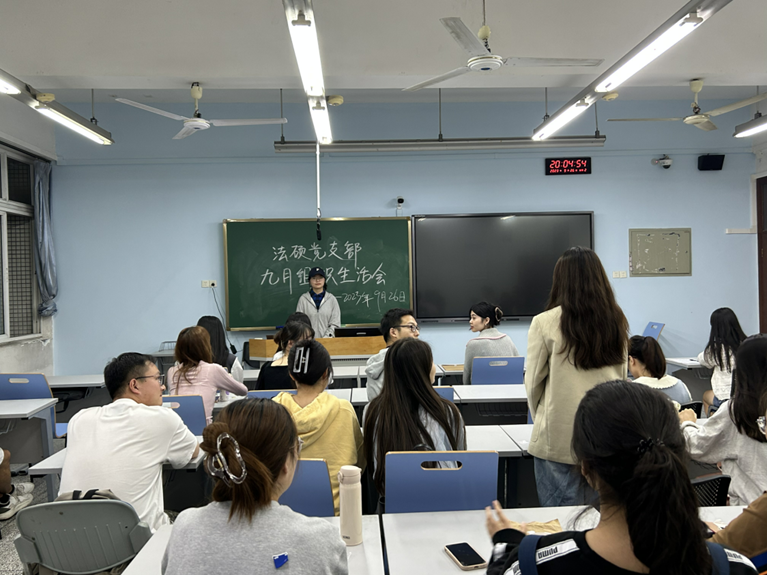 恰逢2023級新生黨員加入法碩黨支部,支部副書記陳夢同志表示,希望各位黨員同志能夠修身立德、不忘初心,在院黨組織的關心和教育下,以蓬勃的朝氣投入到新學期的工作和學習中去。不斷豐富自身學識,踔厲奮發,勇毅前行,以更飽滿的精神面貌、更積極的學習態度,在科研學術中奮發努力,展現新作為。真正做到懷抱夢想又腳踏實地,敢想敢為又善作善成。