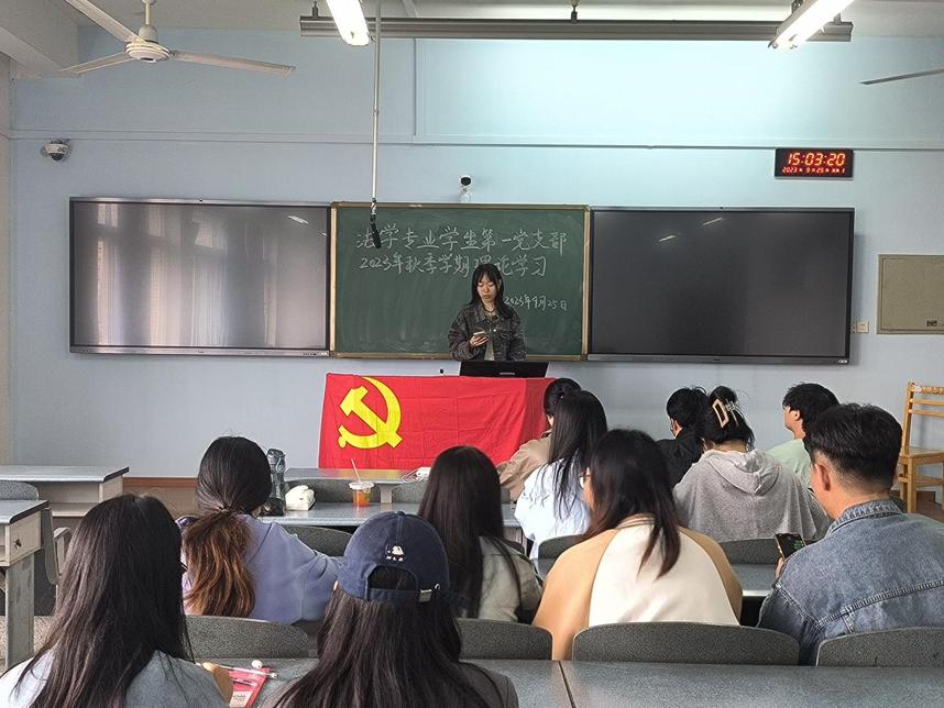 為深入理解和貫徹黨的二十大精神,牢記黨的中心任務,以高質量發展為首要任務,推動支部理論學習再上新臺階,法學院法學專業學生第一黨支部于9月25日15時在博學樓A502開展習近平總書記在四川考察期間的重要講話精神專題學習。本次活動由見習支委劉妞妞同志主持,黨支部全體同志積極參與。