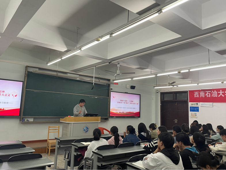 10月24日19時,法學專業學生第三黨支部聯動2023年秋季學期發展對象培訓班,于思學樓A217開展了十月理論學習,主題為“貫徹學習黨的二十大精神,深刻認識‘兩個確立’的重大意義”。本次學習由肖彤曦同志主持,胡力文同志進行主旨演講。