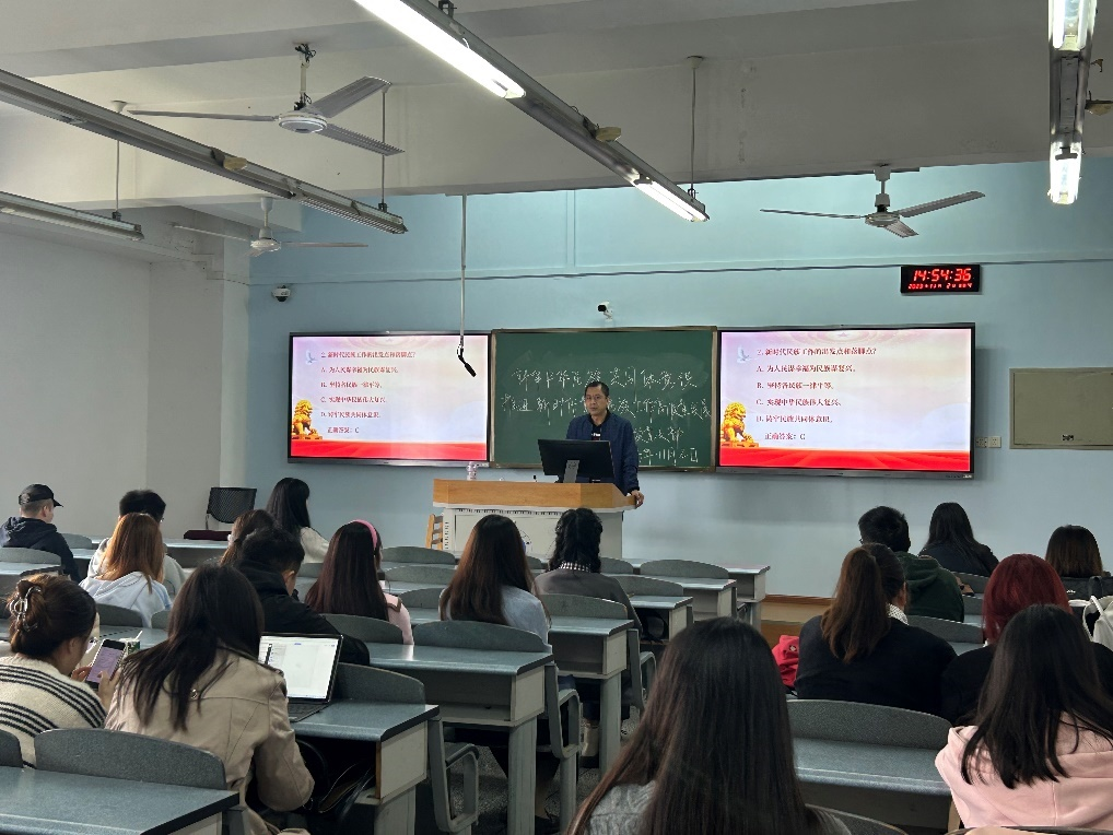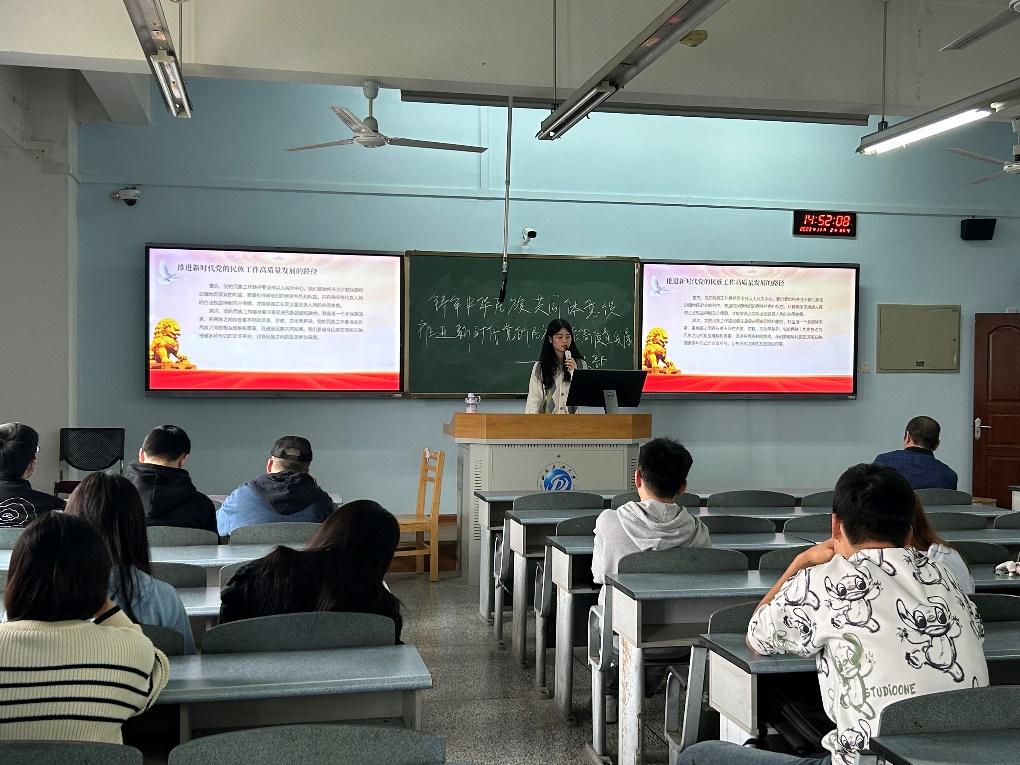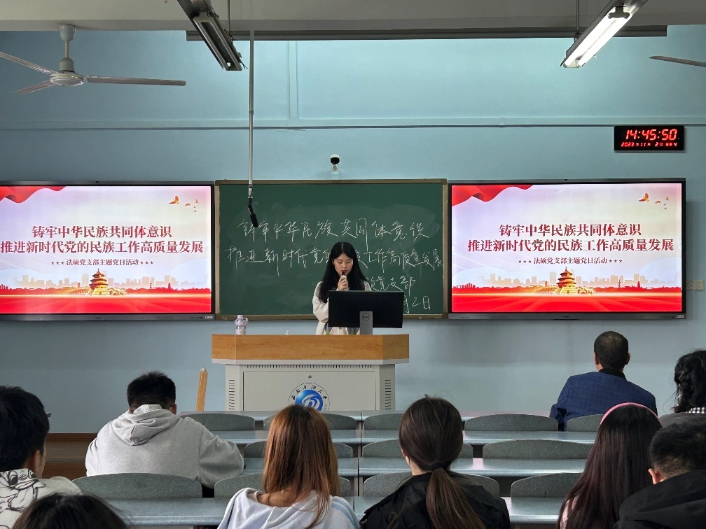 為深入學習貫徹習近平同志在第二十屆中共中央政治局第九次集體學習發表的重要講話,筑牢中華民族共同體意識。2023年11月2日,法碩黨支部在博學樓A502開展主題為“鑄牢民族共同體意識,推進高質量發展”的集中學習。本次主題活動由黨支部見習支委洪璧蓮主持。