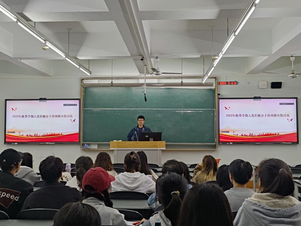 為進一步加強2023年秋季學期入黨積極分子的培養教育,幫助入黨積極分子端正入黨動機,提高思想素質、理論水平與黨性修養,我院于2023年10月26日晚7點,在思學樓A217教室開展了第一次小組討論。小組討論之始,邵老師從自身出發,向同學們講述了自己最初的入黨經歷,并鼓勵同學們珍惜寶貴的入黨機會,同時引出本次討論的第一個主題“談談對中國共產黨的認識”。同學們通過線上課程的學習,對中國共產黨有了深入的了解與認識,在本次小組討論中,各位入黨積極分子都積極踴躍地發表自己的看法,闡述著自己對中國共產黨的看法。