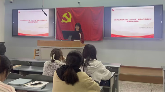 法學專業學生第二黨支部于11月23日下午在博學樓A504以線上線下相結合的方式開展學習習近平主席在“一帶一路”國際合作高峰論壇上的重要講話精神學習。本次活動由郭瑋同志主持,黨支部全體同志參與。
