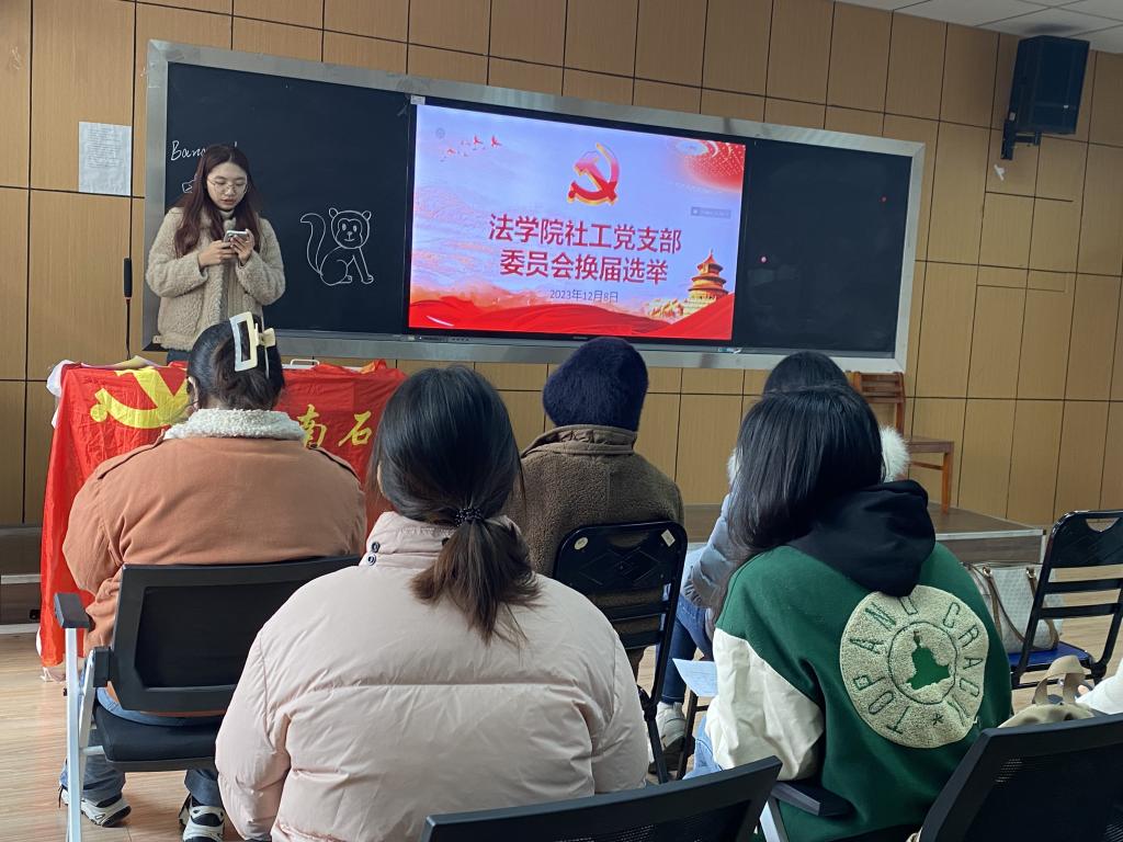 為進一步加強基層黨組織建設,充分發揮黨支部的戰斗堡壘作用和黨員先鋒模范作用,增強基層黨組織的創造力、凝聚力和戰斗力,西南石油大學法學院社會工作專業學生黨支部于12月8日中午召開黨支部換屆選舉大會。