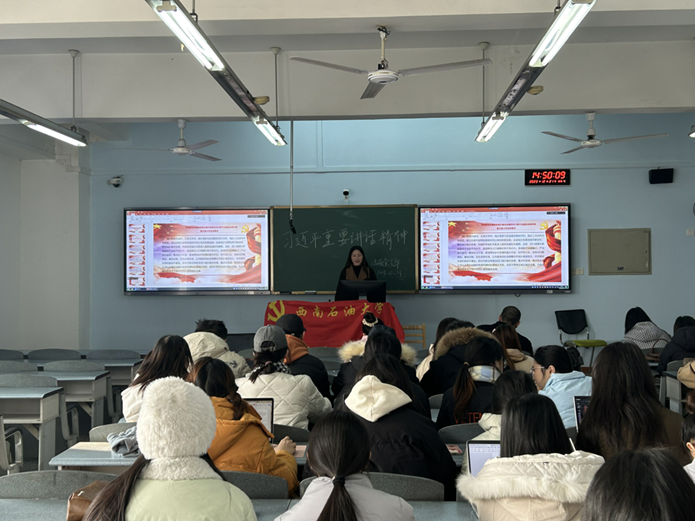 為深入學習貫徹習近平總書記重要指示精神,進一步明確推進四川城鄉(xiāng)融合發(fā)展的重大意義、歷史方位和重點任務,2023年12月21日,法碩黨支部在博學樓A502開展主題為“學習貫徹中共四川省委十二屆四次全體會議精神”的集中學習。本次主題活動由法碩黨支部第三黨小組成員張?zhí)炝胀局鞒帧?/span>