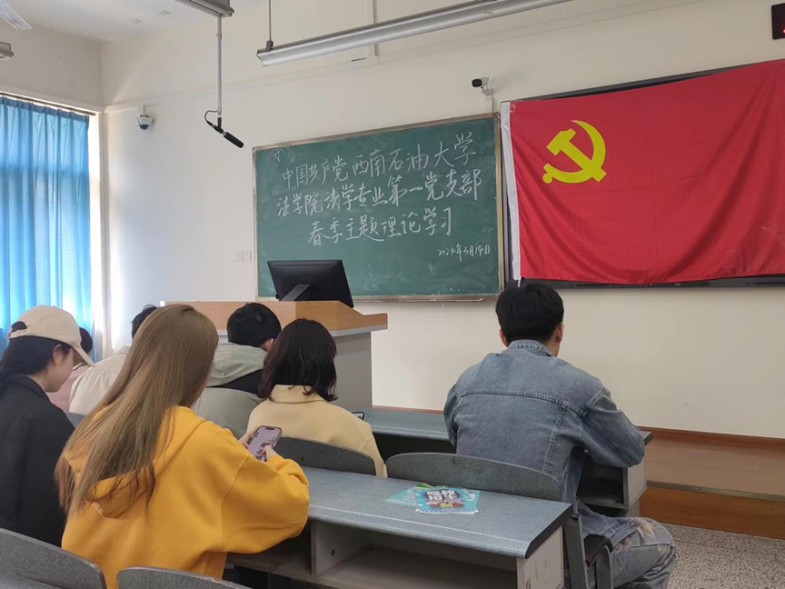 為深入學(xué)習(xí)習(xí)近平總書記在中共中央政治局第十一次集體學(xué)習(xí)時的重要講話精神,加強支部成員自身建設(shè),法學(xué)院法學(xué)專業(yè)學(xué)生第一黨支部于3月14日中午在博學(xué)樓B306召開三月第一次理論學(xué)習(xí),部分成員線上參加。本次會議由黨支部見習(xí)支委劉妞妞同志主持,黨支部全體同志積極參與。