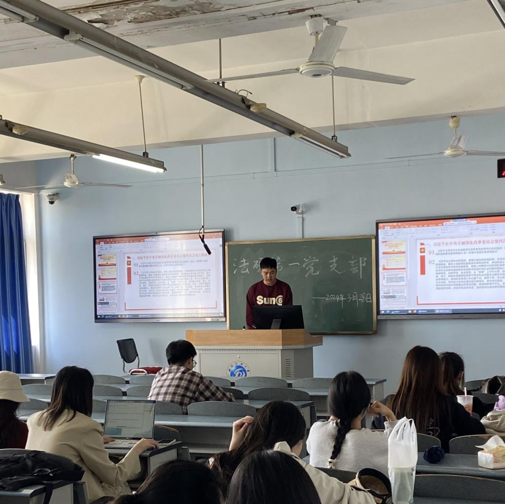 為深入開展學(xué)習(xí)貫徹習(xí)近平新時(shí)代中國(guó)特色社會(huì)主義思想政治理論學(xué)習(xí),2024年3月28日,法碩第一黨支部在博學(xué)樓A504以線下會(huì)議的形式開展主題為“學(xué)習(xí)貫徹習(xí)近平總書記在主持召開中央全面深化改革委員會(huì)第四次會(huì)議上的重要講話精神”的集中學(xué)習(xí)。本次主題活動(dòng)由黨支部宣傳委員白玉河同志主持。