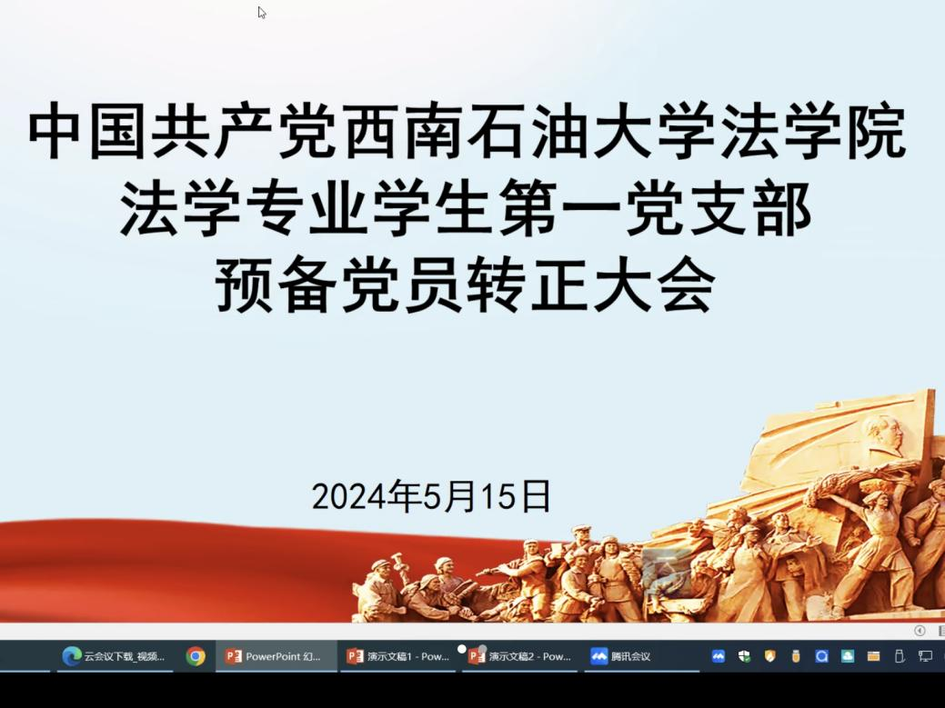 法學專業學生第一黨支部于5月15日下午在博學樓A102召開預備黨員轉正大會,部分成員線上參與,黨支部全體同志積極參與。