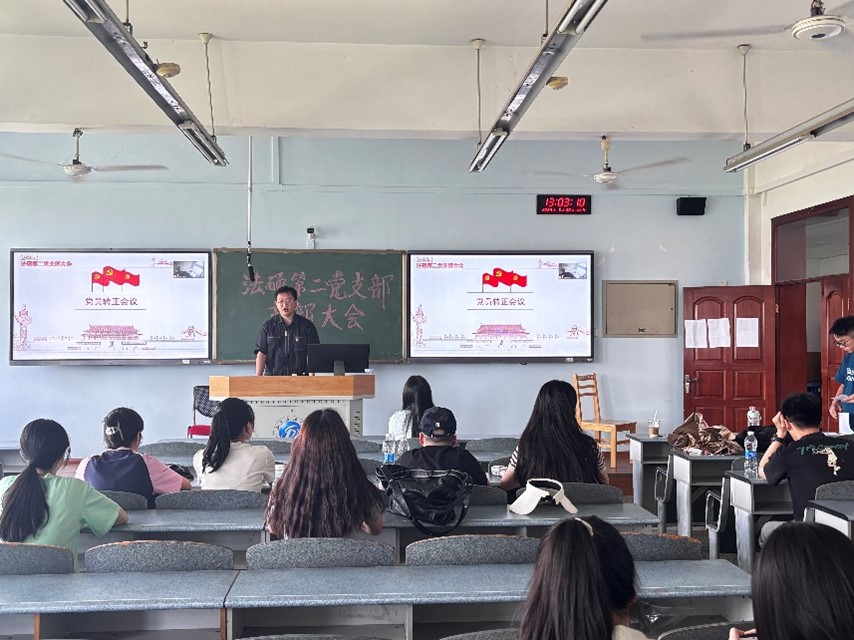 2024年5月30日,法學院法律碩士專業研究生第二黨支部在博學樓A504召開預備黨員轉正暨預備黨員發展大會,大會嚴格按照《中國共產黨發展黨員工作細則》的規定進行,由黨支部委員曾嘉駿同志主持。