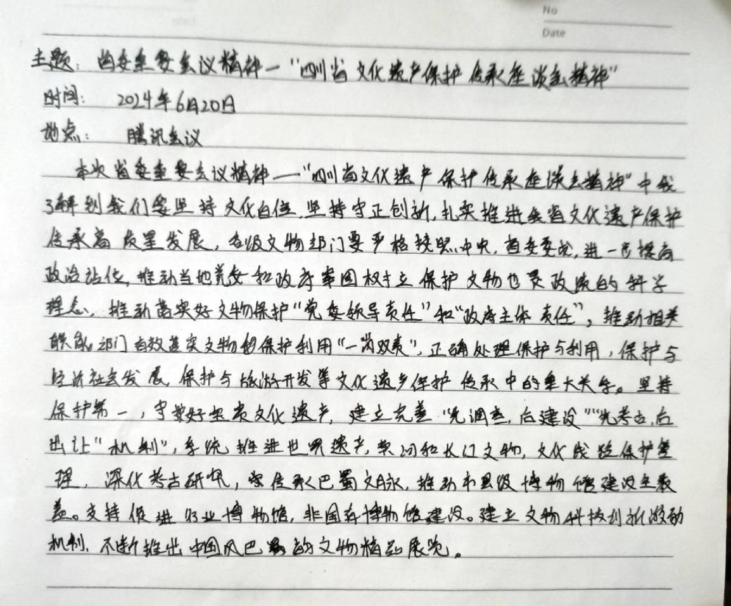 通過(guò)此次理論學(xué)習(xí),支部成員表示將繼續(xù)深入學(xué)習(xí)貫徹省委會(huì)議精神, 為保護(hù)和傳承四川的文化遺產(chǎn)貢獻(xiàn)自己的力量。