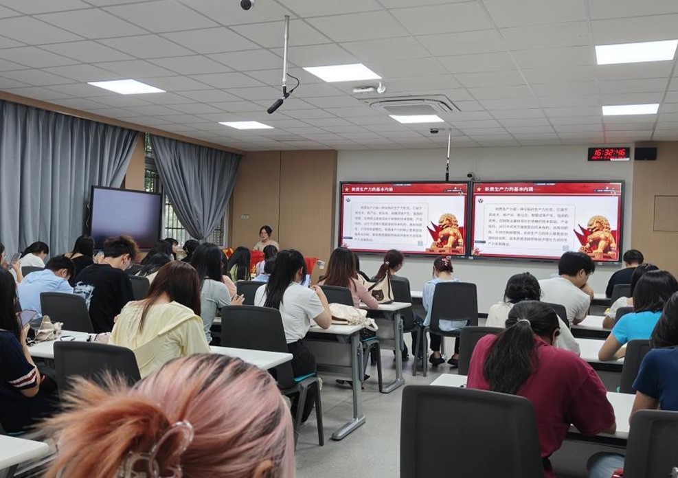 習近平總書記在中共中央政治局第十一次集體學習時強調:“發展新質生產力是推動高質量發展的內在要求和重要著力點?!绷暯娇倳浀闹匾撌?,豐富發展了馬克思主義生產力理論,深化了對生產力發展規律的認識,進一步豐富了習近平經濟思想的內涵,為開辟發展新領域新賽道、塑造發展新動能新優勢提供了科學指引。為深入學習領悟新質生產力的相關內容,法學院社會工作專業學生黨支部于6月20日在博學樓B103舉行相關專題的學習。