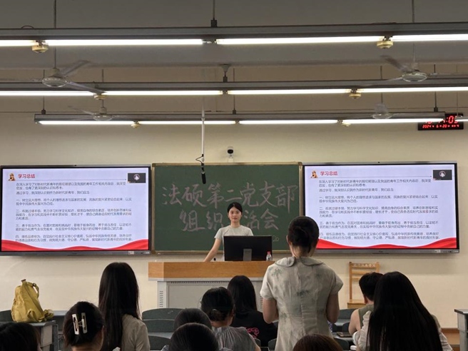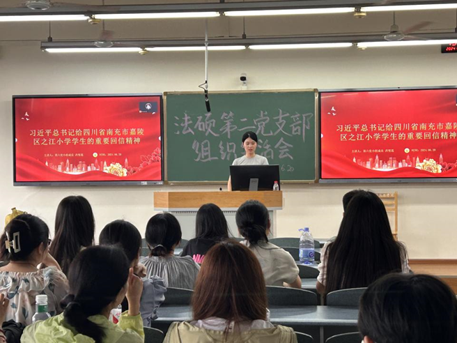 為深入學習習近平新時代中國特色社會主義思想,2024年6月20日,法碩第二黨支部在博學樓B507開展主題為“習近平總書記給四川省南充市嘉陵區之江小學學生的重要回信精神”的集中學習。本次主題活動由黨支部支委曾嘉駿主持。