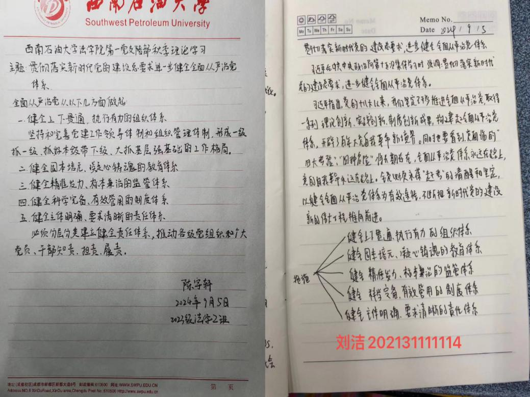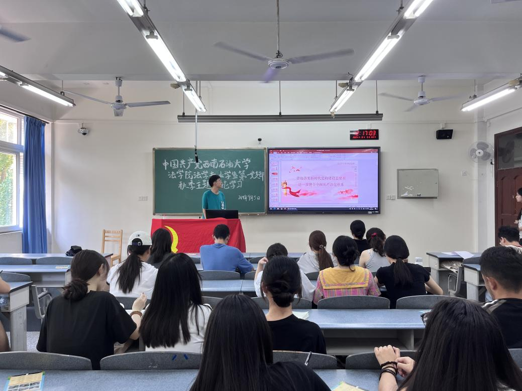 全面從嚴治黨作為黨的建設的重要組成部分,對于保持黨的先進性和純潔性具有深遠意義。為了深入貫徹黨的建設總要求,法學院法學專業學生第一黨支部于9月5日中午在博學樓B306召開九月第一次理論學習,黨支部全體同志積極參與。