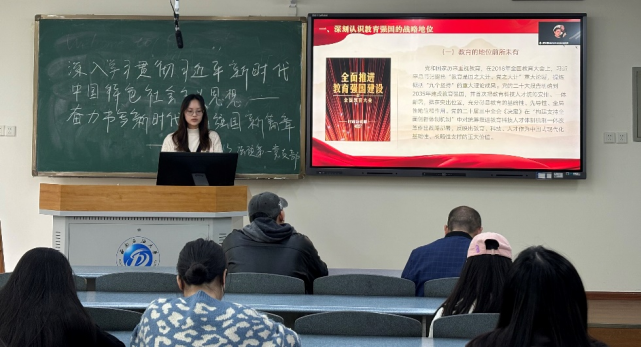 會議開始,由黨支部第一黨小組刁怡萍同志帶領參會同志學習主要內容。教育是強國建設、民族復興之基。刁怡萍同志從深刻認識教育強國的戰略地位、深刻把握教育強國的科學內涵和全面深入落實教育強國建設的戰略任務三個方面進行系統闡述,在層層遞進的細致講授中,不斷地和參會同志產生共鳴并引起大家對教育強國思想的深入思考。