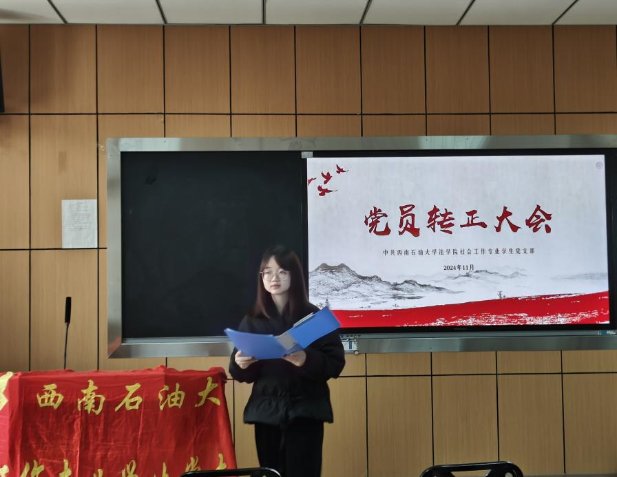 為進一步做好支部發(fā)展工作,加強支部黨員隊伍建設,法學院社會工作專業(yè)學生黨支部于2024年11月22日在博學樓A406 召開預備黨員轉正大會。