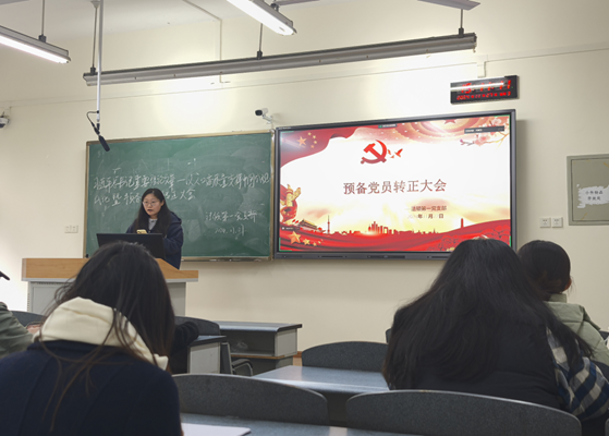 會上,先由丁薇和鄒元元2位預備黨員同志相繼宣讀轉正申請書,匯報預備期一年以來的理論學習、思想覺悟和工作生活等情況。預備黨員丁薇認真匯報在一年預備期內的理想信念、志愿活動和團結同學等方面的情況,并將切實采取措施改進自身不足,決心不辜負組織的期望,爭做一名合格黨員。各入黨介紹人對2名預備黨員預備期間的培養考察情況進行了介紹,并發表同意她們按期轉正的意見。黨員同志們對2名預備黨員的轉正申請進行了充分討論,積極發表個人意見,肯定他們在政治理論學習、思想品德及學習工作等方面的優點,同時也指出他們的不足之處。