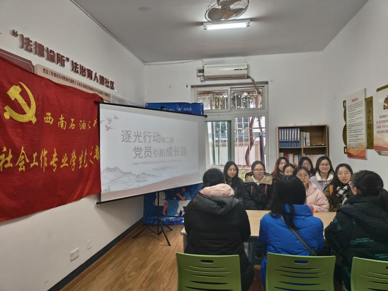 近日,法學院社會工作專業學生黨支部成功舉辦了 “逐光行動第二期 - 黨員引航成長路” 黨日主題活動,旨在通過黨員榜樣力量,助力學生成長成才,進一步推動 “三全育人” 工作深入開展。此次活動由黨支部書記肖丹主持,11 名社工支部同學共同參與。
