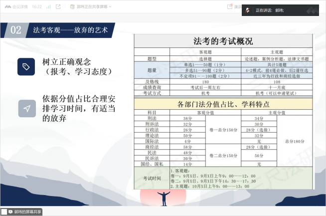 第一期分享會由郭瑋同志與楊喆鈺同志主講。兩位同志均已順利通過2024年法考并成功推免研究生。二人分別圍繞法考備考經驗與保研推免經驗進行深入分享。郭瑋同志詳細闡述了法考備考策略,涵蓋學習方法、時間管理、心態調適等內容。分享了備考資源的選用方式,包括APP平臺及線上指導教師的選擇,為同學們提供了切實可行的備考指南。