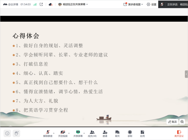 第一期“薪火耀黨徽”先進經驗分享會圓滿成功。法學專業學生第二黨支部的積極分子黎宴伶同學表示:“我不僅收獲了寶貴的法考備考與保研推免經驗,更明確了未來的學業規劃與發展方向。期待黨支部將來能夠為同學們搭建更多元、更高質量的交流平臺?!?/span>