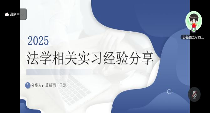 蘇新雨與于蕊兩位同志分別結合自身法院和律所實習經歷,為同學們提供了極具實踐意義的分享。蘇新雨同志在法院實習期間,書寫法律文書共40余份,作為獨立書記員開庭10余次,參與調解案件10余起。她詳細介紹了法院實習期間案件處理流程、法律文書撰寫技巧,并就職場禮儀與技能提升方面給出了中肯的建議。