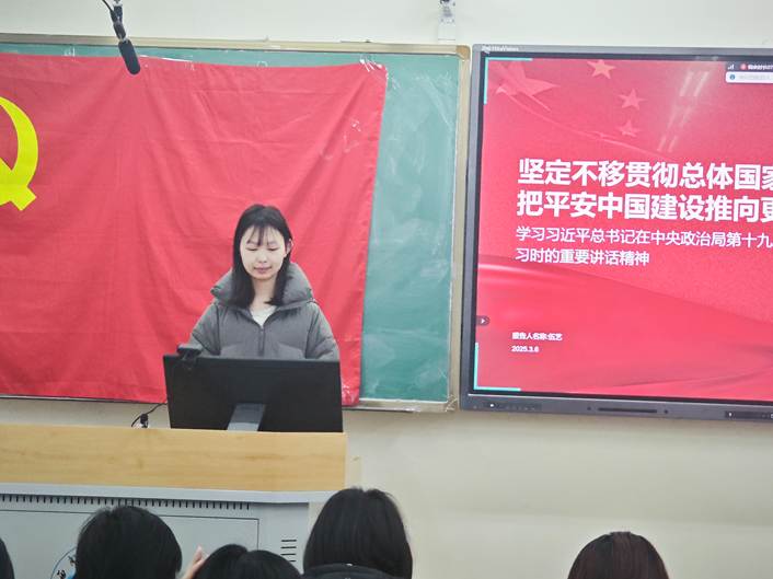 隨后,支部書記鄧超越就本次學(xué)習(xí)內(nèi)容進(jìn)行了進(jìn)一步地分析講解,她介紹了在總體國家安全觀的指導(dǎo)下國家安全法治建設(shè)的具體實(shí)踐,同時(shí),結(jié)合當(dāng)前國際國內(nèi)形勢(shì),闡述了平安中國建設(shè)的重要性和緊迫性。