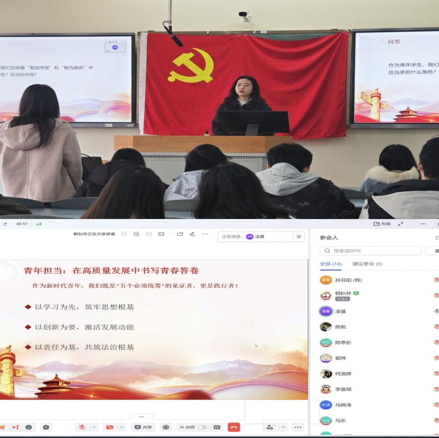 3月21日上午,中國共產黨西南石油大學法學院法學專業學生第二黨支部于博學樓B303開展三月第二次理論學習活動,主題為學習習近平重要文章:經濟工作必須統籌好幾對重要關系。支部同志線上線下參與學習。