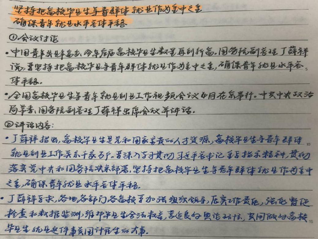 會上,閆小潔同志首先指出了中國青年失業率高企的現實,接著指出高校畢業生是黨和國家寶貴的人才資源,要全力促進其高質量充分就業,然后從增加就業崗位、做好就業指導服務工作、加強組織領導三方面闡釋如何促進就業,最后表明要不斷努力確保青年就業水平總體平穩。