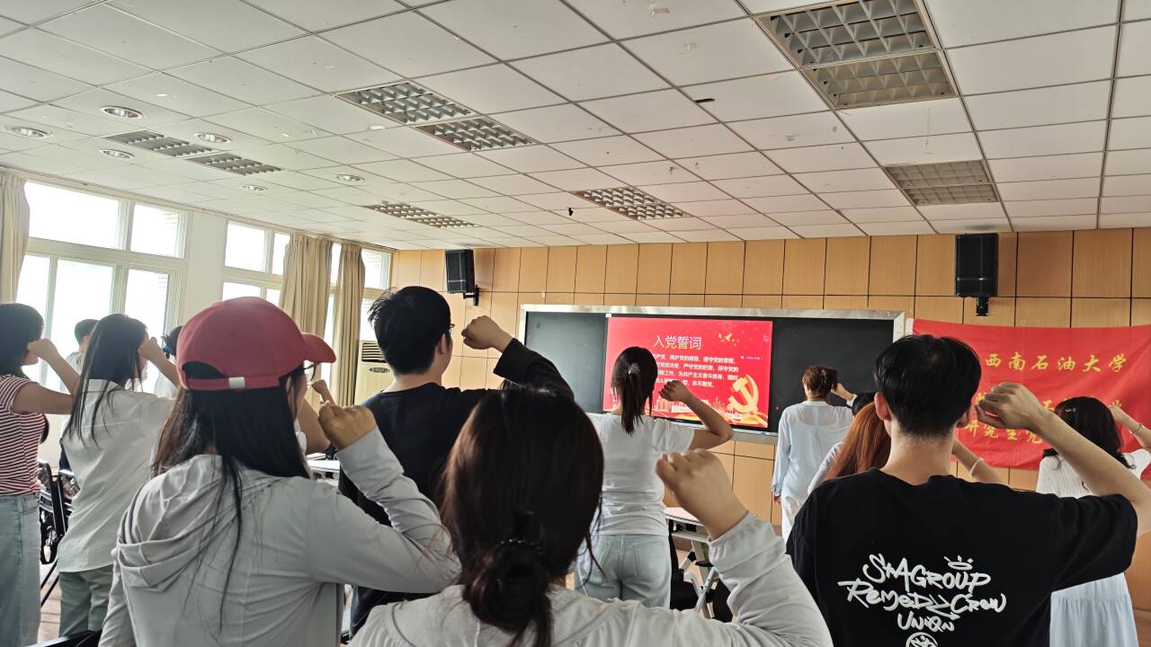 會議第一項,黨員發展大會。會上,黃思雨等五位同志就自己的入黨動機、學習工作情況以及未來的規劃進行了匯報。表示將時刻以黨員的標準嚴格要求自己,為黨和人民的事業貢獻自己的力量,并表達了自己對黨的堅定信仰和為人民服務的決心。經過與會黨員的舉手表決,同意通過黃思雨等五位同志發展為中共預備黨員的申請。隨后,李明修同志帶領全體黨員重溫了入黨誓詞,面對鮮紅的黨旗,莊嚴宣誓。