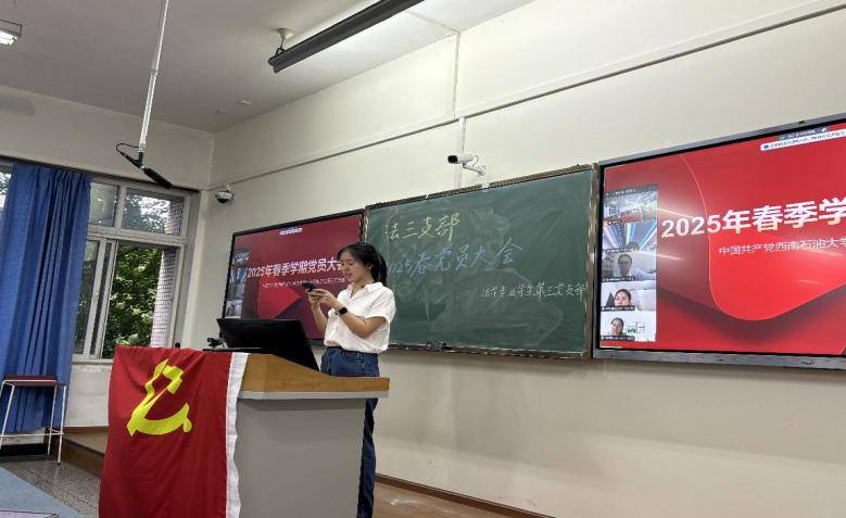 為進一步加強黨員隊伍建設,嚴格黨員發展程序,確保黨員質量,西南石油大學法學院法學專業學生第三黨支部于2025年5月23日晚在博學樓B303召開預備黨員轉正大會,大會討論了關于盧姝伶、肖詩雨、蔡千惠、湯陽、澤讓措姆、鮮海婷、楊麗、趙思琪、朱燁盈9位預備黨員的轉正事宜。