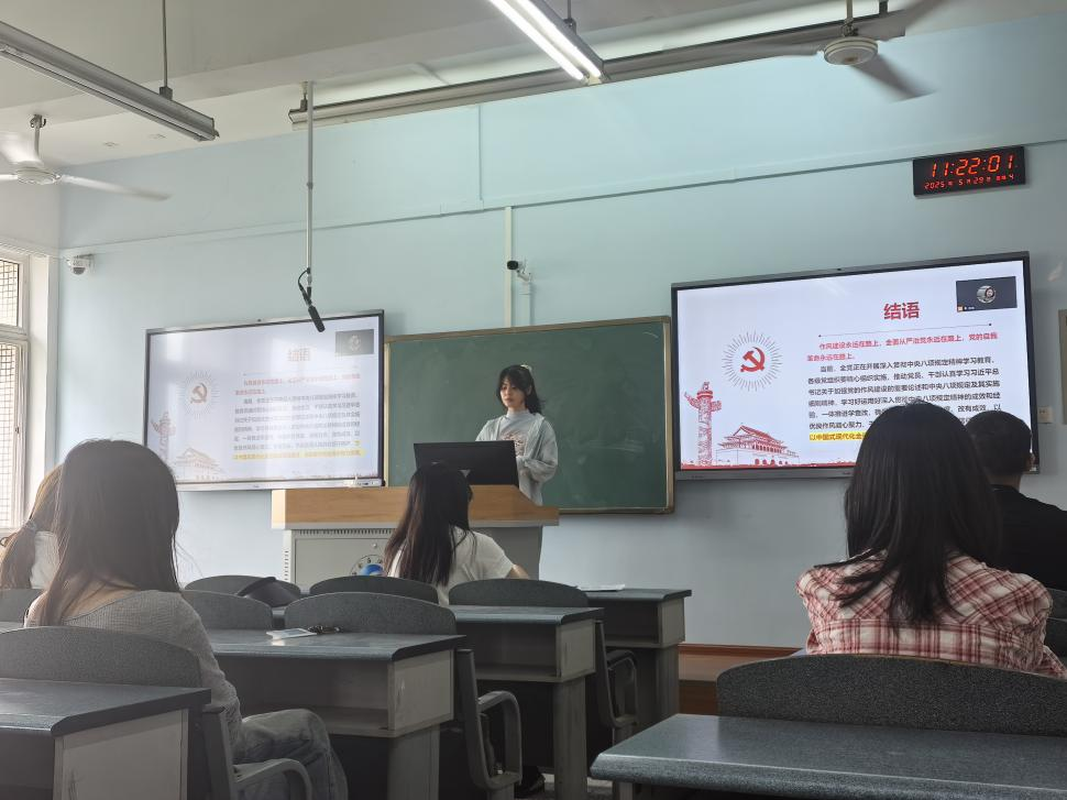2025年5月29日,法碩第二黨支部于博學樓A504召開以“鍥而不舍落實中央八項規定精神”為主題的組織生活會。旨在學習中央八項規定精神,推動全面從嚴治黨向縱深發展,進一步加強黨組織作風建設。本次會議由第六黨小組組長洪璧蓮同志主持,全體黨員參與。