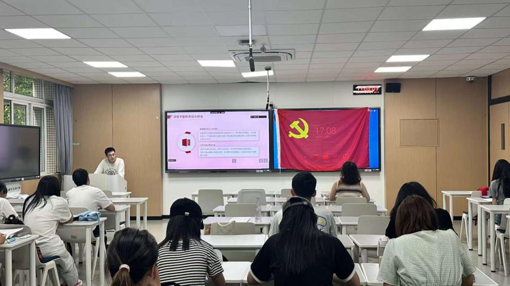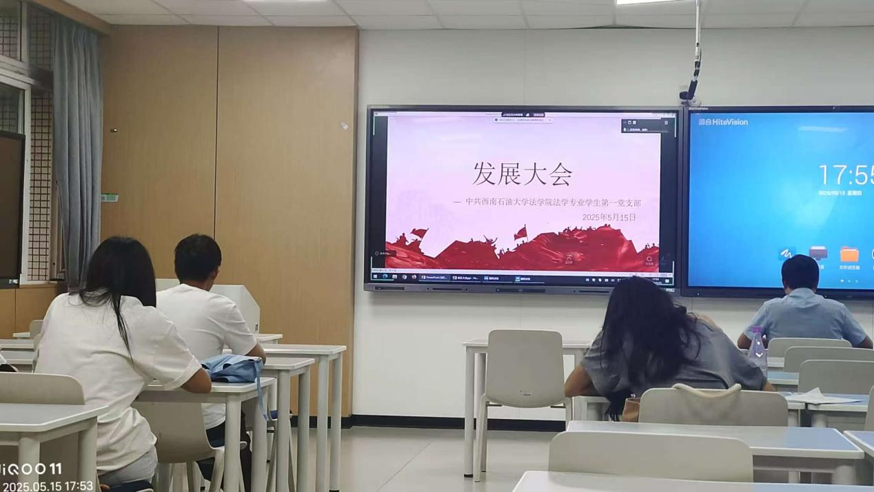 5月15日下午,法學專業學生第一黨支部在博學樓 B203 召開預備黨員發展大會,同步開展春季第三次理論學習。會議由張芷涵同志主持,黨支部書記于百江出席,支部同志以線上線下相結合的方式參與。