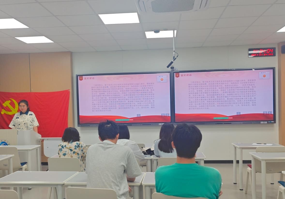 本次學(xué)習(xí)由黃鴻霖同志領(lǐng)學(xué)。黃鴻霖同志以2025年世界數(shù)字教育大會開幕式丁薛祥、懷進(jìn)彭關(guān)于關(guān)于中國數(shù)字教育發(fā)展和國際數(shù)字教育交流合作的講話為引入點(diǎn),結(jié)合世界數(shù)字教育大會分會場主題,以海南省印發(fā)《海南省推進(jìn)國家中小學(xué)智慧教育平臺深化應(yīng)用行動計(jì)劃》,新疆推行“慕課西部行計(jì)劃2.0”以及寧夏回族自治區(qū)將“專遞課堂”“名師課堂”納入“互聯(lián)網(wǎng)+教育”示范區(qū)建設(shè)為實(shí)踐案例,帶領(lǐng)支部成員重點(diǎn)研討了2025世界數(shù)字教育大會十大分會場內(nèi)容。