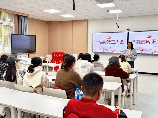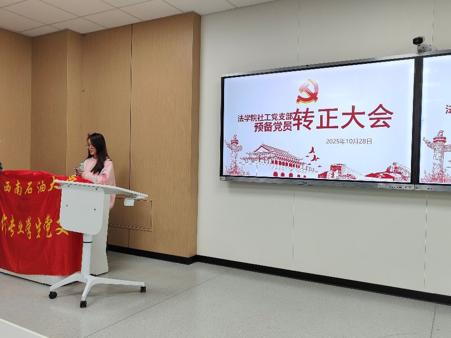 2025年10月28日,法學院社會工作專業學生黨支部于博學樓A102教室召開黨員轉正大會,審議并表決劉霞同志的轉正事宜。