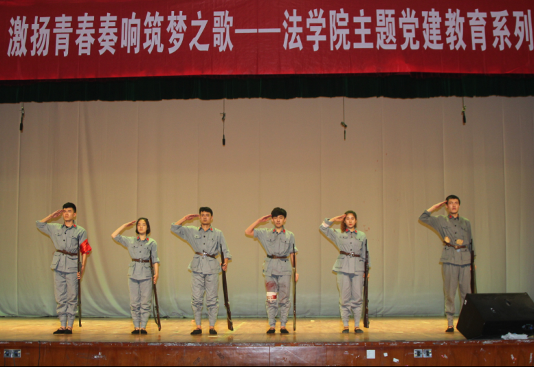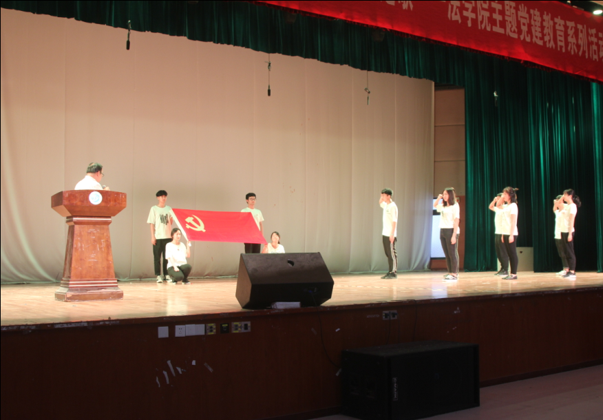 啟動儀式以舞劇《最后的戰役》開場,藝術化地展示了革命戰爭年代的慷慨悲壯。法學院黨委書記蘭力平同志代表學院黨委致辭,并宣布活動啟動。革命后人代表程紀渝先生以“回顧先輩,尋夢歷程多磨難;激勵后人,青春筑夢好奮斗”為題,從上個世紀初葉,中國青年、知識分子遠渡重洋,前往法國留法勤工儉學、尋求救國救民的真理開篇,回顧了中國革命先驅,不怕流血犧牲,為締造新中國而奮斗一生的光輝歷程,并激勵今天的中國青年的走好新的長征之路。李海先生帶領全體黨員重溫入黨誓詞,現場熱情而莊重。